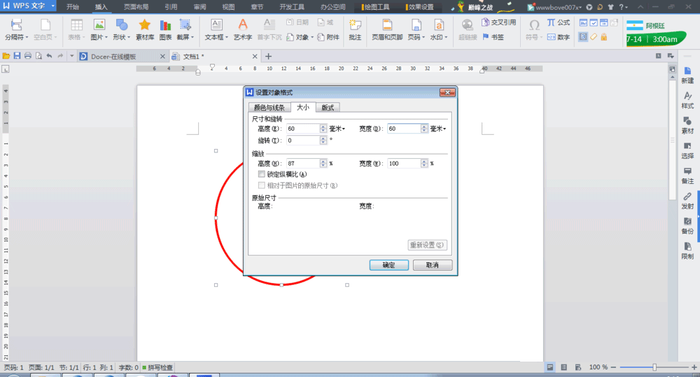 4、同理,可以根據(jù)自己的需要修改橢圓的大小,注意高度和寬度一定要是相等的,這樣才是圓,即印章的外側(cè)圓形。