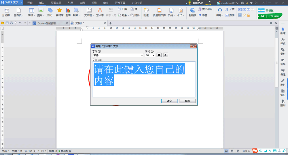 9、再接著插入橫向的藝術(shù)字。方法和原理與環(huán)形藝術(shù)字相同。不在贅述。