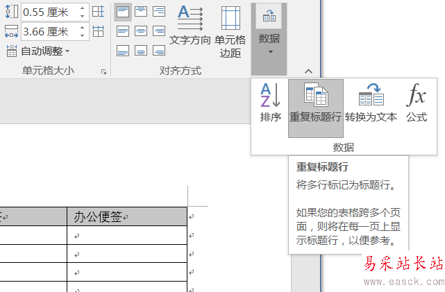 最后,選中“重復標題行”單擊即可。這個時候,每頁的第一行表格內容,都是被“復制”過的重復標題行,注意這個標題行不可編輯也不可修正,簡單說就像一個克隆復制品,什么都像,唯一的問題它不是真的。而當你修改首頁第一行(或者圈選復制的某一行表格標題)內容時,所有頁面第一行的表格標題都會隨之改變。