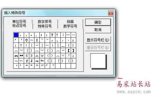 4、點擊特殊符號選項,彈出插入特殊符號對話框,如圖所示: