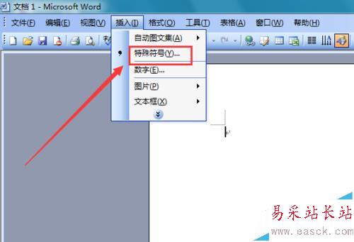 3、點擊插入選項,在其子級菜單那里找到特殊符號選項,如圖所示:
