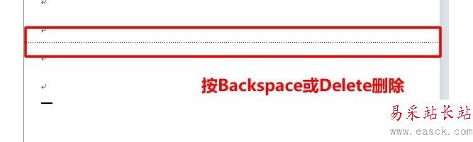 刪除方法二:將光標放于空白頁的開始處,單機其左側,當空白頁出現一個橫條時,按鍵盤上的“刪除鍵”即可刪除空白頁。