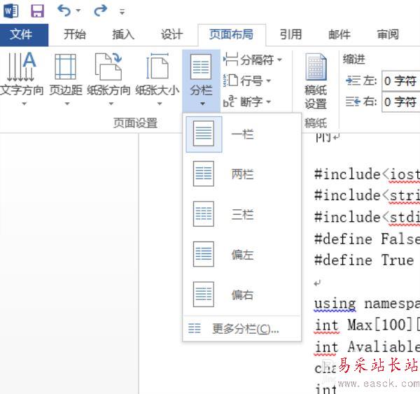 3、打開下拉菜單,就直接可以選擇你的需要分成幾欄,一般來說分成兩欄就可以了