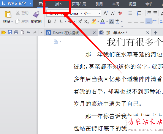 1、首先打開我們需要插入頁碼的word文檔,然后再文檔的菜單欄上面尋找“插入”