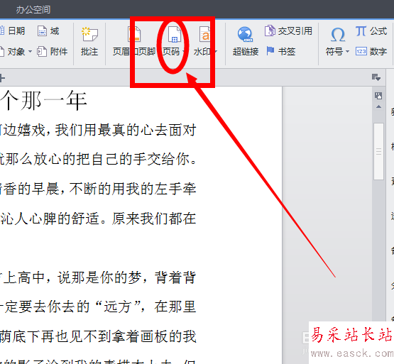 2、單擊插入,然后在插入的子菜單欄上面找到“頁碼”