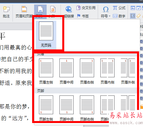 3、在頁碼這里我們看到是可以在分解出下一級菜單的,而在這一級菜單里就有很多頁碼的格式