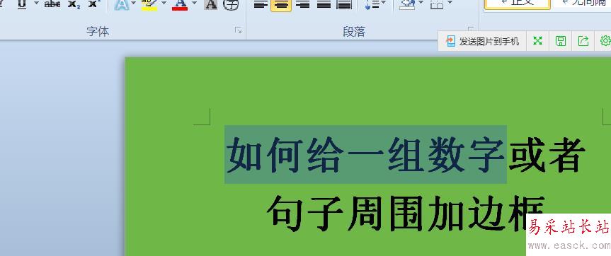 4、鼠標上移到功能區,選擇字符邊框,如圖