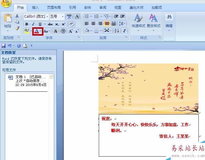6、輸好文字后,就可以選著文字,更改其文字顏色,使其更加好看。(如下圖)