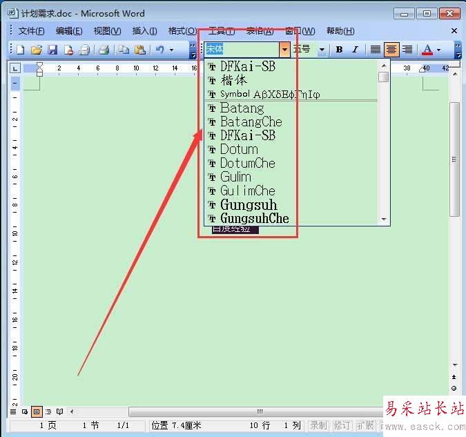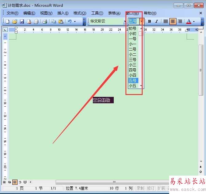 3、選擇好字體之后,我們設置下字體的大小 初號是最大的 ,小五是最小的 如圖