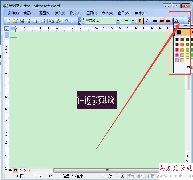 6、最后一步是,我們可以設置字體的顏色,點擊顏色后面的倒三角,就可以看到很多的顏色選擇,這個大家根據(jù)自己的需求去操作了 如圖
