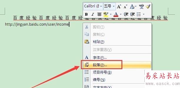 1、如上圖所示,在此情況下,右擊鼠標,選擇“段落”(如果是單獨某段,需要選中此段落后再右擊選擇):
