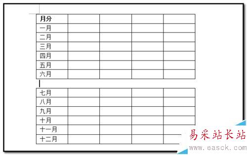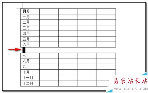 5、也可以這樣操作,選中七月這一行后,按鍵盤的CTRL+SHIFT+回車鍵;即可把表格從七月這一行上面分開,一到六月為一表格;七到十二月為一表格;