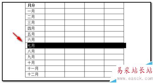 2、現在要把此表格一為二,一到六月為一表格;七到十二月為一表格;選中七月這一行;