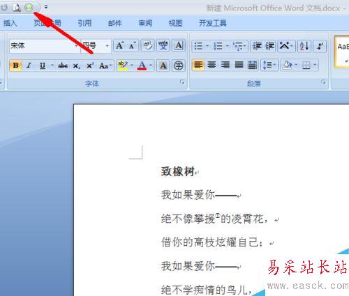 1、首先我們先打開需要設置自動滾動頁面的word文檔,打開之后我們單擊左上角的office圖標,如圖箭頭所指的圖標。