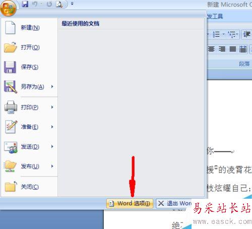 2、單擊該圖標之后會彈出一個對話框,此時我們單擊對話框底部的“word選項”按鈕。