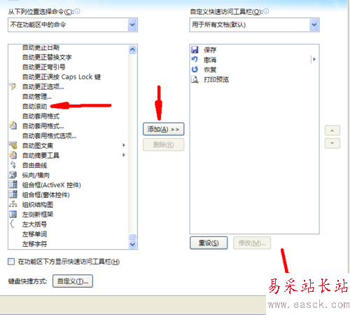 6、選擇之后會進入到如圖所示,此時我們將滾動框拉到最底部就會看到有一個“自動滾動”選項,我們選擇該選項,然后單擊“添加”按鈕,選擇添加之后再單擊下方的“確定”按鈕。