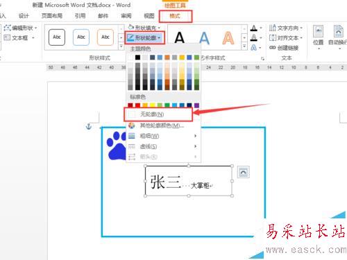 6、在文本框中輸入名字及職務(wù),然后設(shè)置文本框的邊框?yàn)闊o。