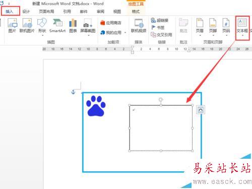 5、依次點(diǎn)擊“插入”>“文本框”,然后在名片上繪制一個(gè)文本框。