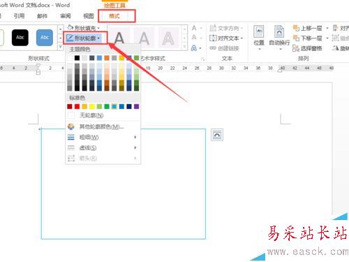 2、選中矩形,點(diǎn)擊格式,設(shè)置矩形的填充顏色及輪廓顏色的粗細(xì)。