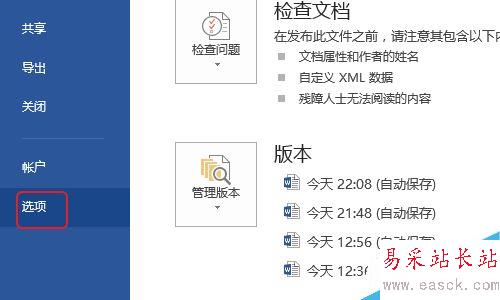 3、如下圖,找到“選項”菜單,單擊打開選項設置窗口,我們需要通過選項設置窗口對整個Word軟件進行特性設置,讓他適用于所有在本機上打開的Word文件