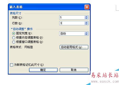 3、這時會彈出一個對話框,是填寫表格的行和列的數字的,填寫好了以后確定