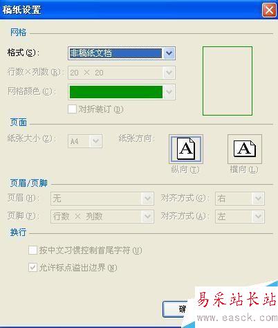 6、由于這里僅是告訴你如何增加,所以就不進行其他操作了,如果你有其他要求可以在相應的設置里進行設置,選擇“方格式稿紙”項后,界面發生變化,如圖: