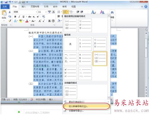 7.如果現有的“編號庫”中沒有需求 的編號,可以點擊下方的“定義新編號格式”,如圖