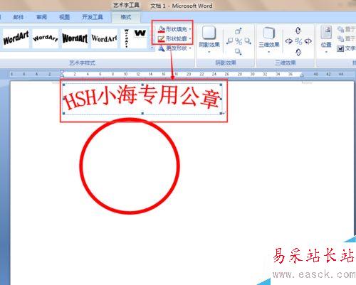 這樣【藝術字】就可以拉到【橢圓】形狀中去了。如下圖所示: