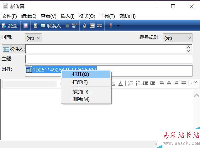 到了這一步,才能看到傳真的編輯界面,右鍵單擊附件中的Tif文件選擇打開,在圖片應用中(小編的是ACDsee)選擇“文件—另存為”就可以將Word轉換成TIFF的圖片文件保存下來了。