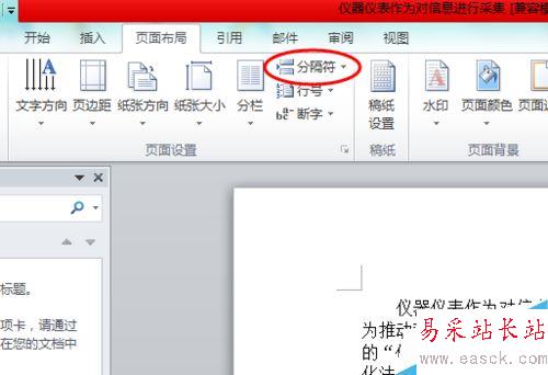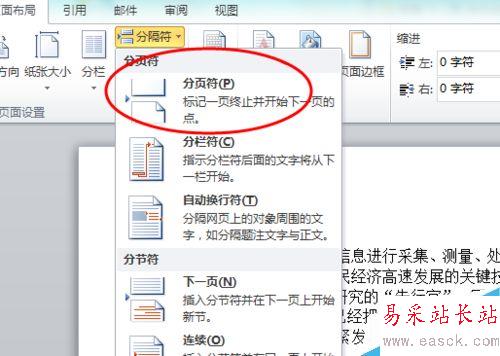 3、在眾多子菜單里面,找到分隔符這個選項。單擊它,又會出來很多選項。此時會出現分解符和分頁符,兩個都可以選。