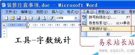 在工具下拉菜單中,選擇字數統計,統計信息就彈出來了,如下圖所示。