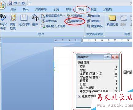 word 2007字數統計在審閱菜單下的——校對——字數統計里面,如下圖所示。