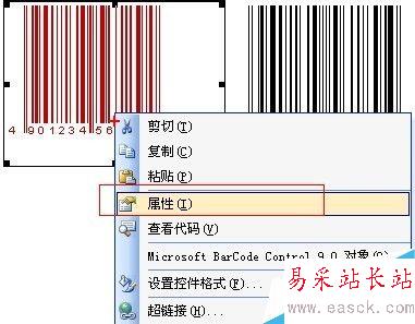 9、選中“條形碼”。右擊打開“屬性”對話框。