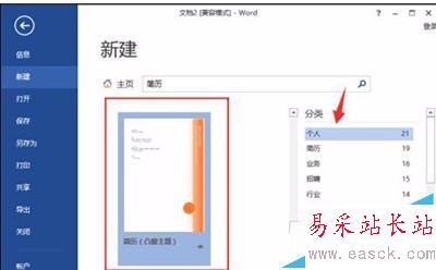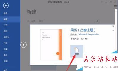 3、點擊選中的簡歷模板后,這個時候會彈出一個對話框,我們直接點擊對話框中的“創建”按鈕即可。