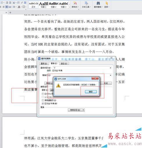 然后提示已經(jīng)替換完了,點(diǎn)擊確定。