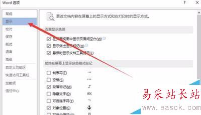 7、在顯示選項卡的右側窗格中,找到打印選項區域下的“打印在 Word 中創建的圖形”選項并將其勾選“√”,最后點擊“確定”按鈕。