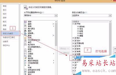 3、點擊自定義功能區,點擊開發工具,后點擊確定。word2016工具欄默認沒有開發工具的。