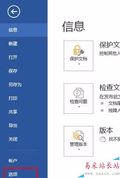 2、然后在彈出菜單中選擇“選項”按鈕。