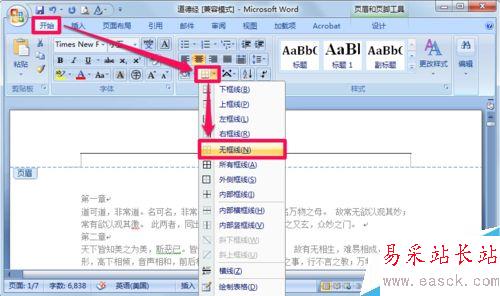 5、在開始選項卡中選則無邊框現就可以了。