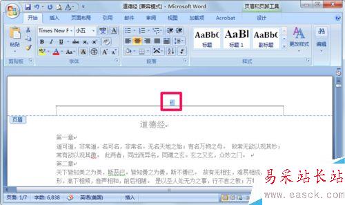 4、這里要說一下,在添加頁腳時經常會出現頁眉上有橫線的情況,如果我們不需要怎么刪除呢?很簡單,先選中回車符。