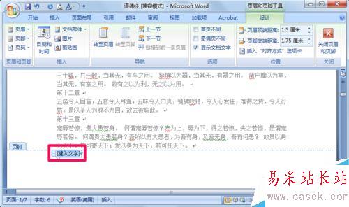 2、在藍色的輸入文字中可以輸入自己需要的頁腳內容。