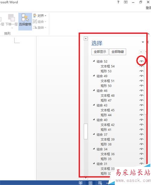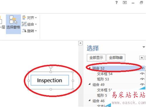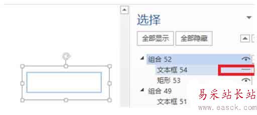 5、例如,鼠標單擊選擇組合52中的文本內容,點擊右側的小眼睛