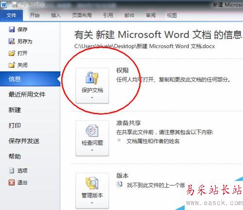 1、打開word文檔,選擇“文件”-“信息”(紅圈)。