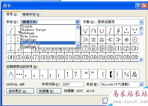 方法三:還是利用符號,只不過這一次是選擇字體功能。流程如下:選擇“插入”菜單,點擊右上角的“符號”,選擇“更多”,就彈出了一個新的窗口。在窗口字體欄中往下拉選擇“windings2”就能找到√了。