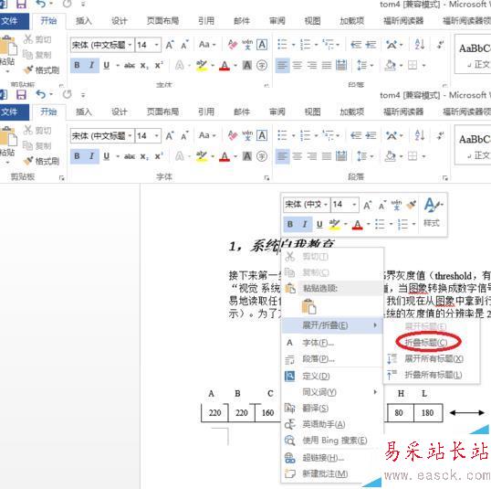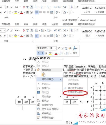 3、在彈出的子菜單欄中選擇“折疊標題”