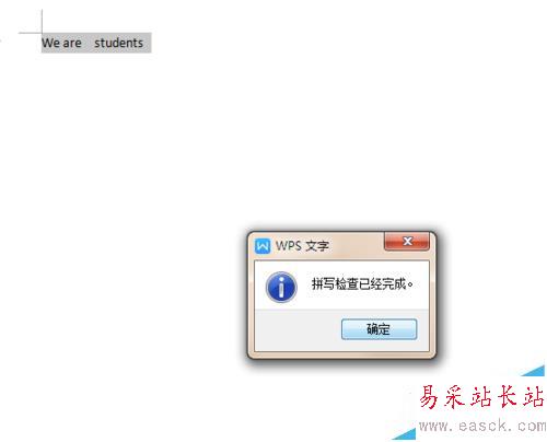 4、然后回到word文檔上,這時候會提示檢查完成,點擊確定,同時英文也更正過來了。