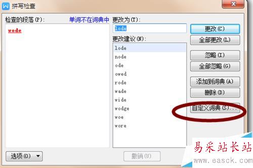 6、這樣紅色波浪線就會消失了,然后我們還可以在其對話框中點擊自定義詞典,如圖