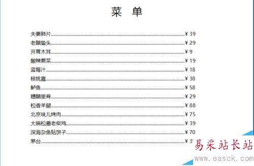 word文檔中使用制表位功能能有效快速編輯需上下對齊的文檔,如工程造價(jià)清單、飯店菜單、倉庫臺(tái)賬等。下圖文檔紅框處,菜單的價(jià)格均以¥號對齊,看起來非常工整。小編現(xiàn)將制表位的應(yīng)用方法作一下介紹,以解決文檔初學(xué)者編寫過程敲空格鍵的麻煩。