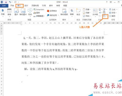 1、依次點擊“插入”、“對象”,進入到下一步。