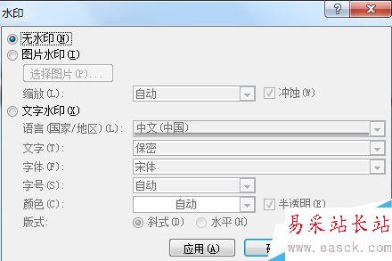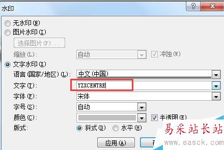 在進入word水印文字功能后,在文字一欄中,可以編輯需要添加的文字水印了,以及word水印文字的顏色等。